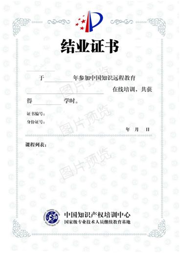 培训班结束后会生成由中国知识产权培训中心颁发的电子证书 ,如果需要纸质证书,也可在线申请。