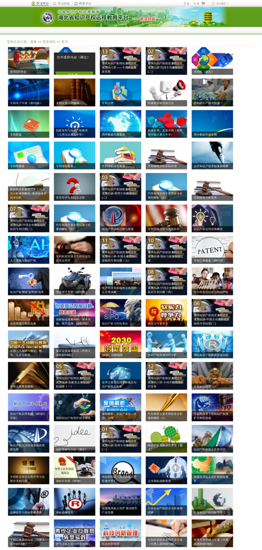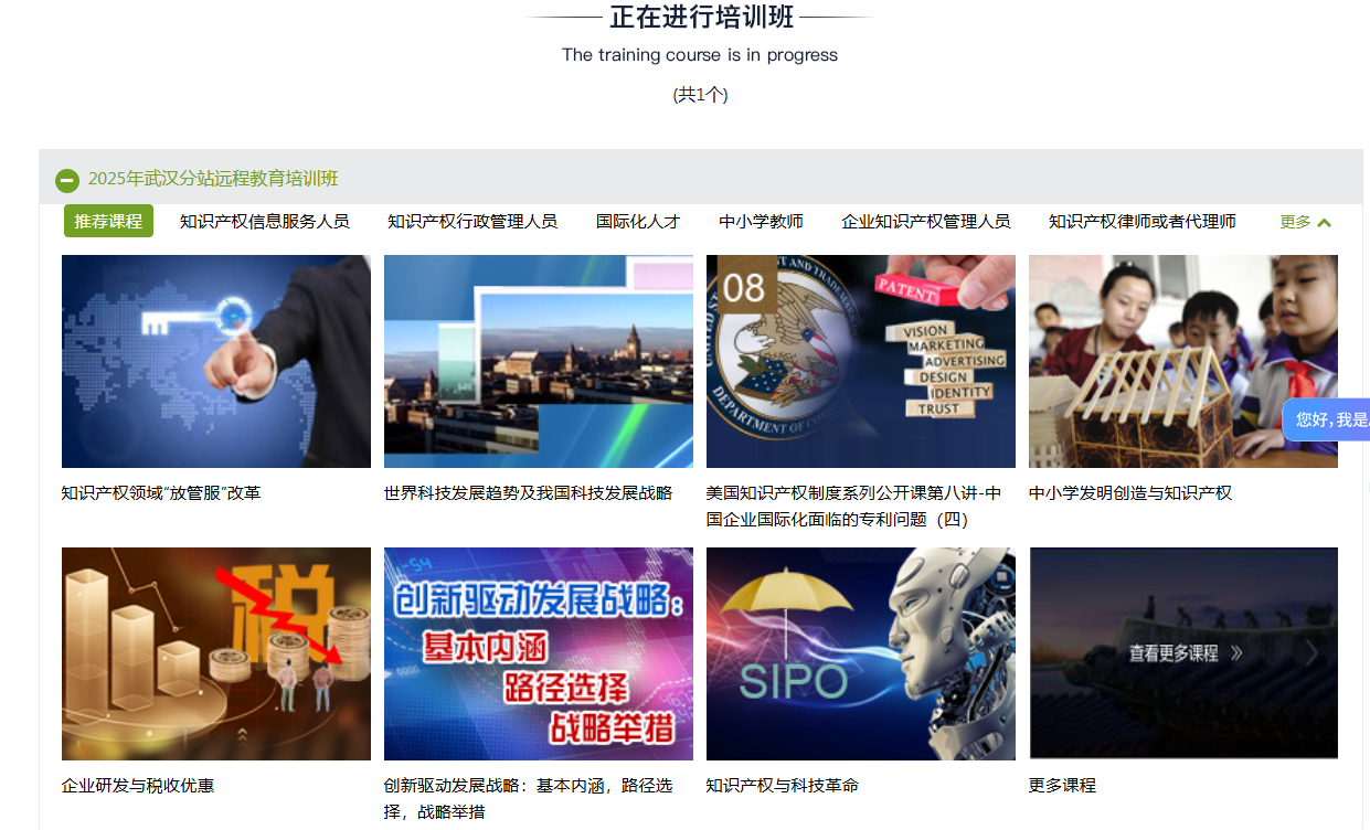 欢迎大家积极加入“中国知识产权远程教育平台武汉分站”选课学习,本年度学习10门以上(欢迎选自主开发)课程(获得学习记录)并通过考试的学员,可申请获得由国家知识产权局中国知识产权培训中心颁发的结业证书,请先进行注册选课学习。